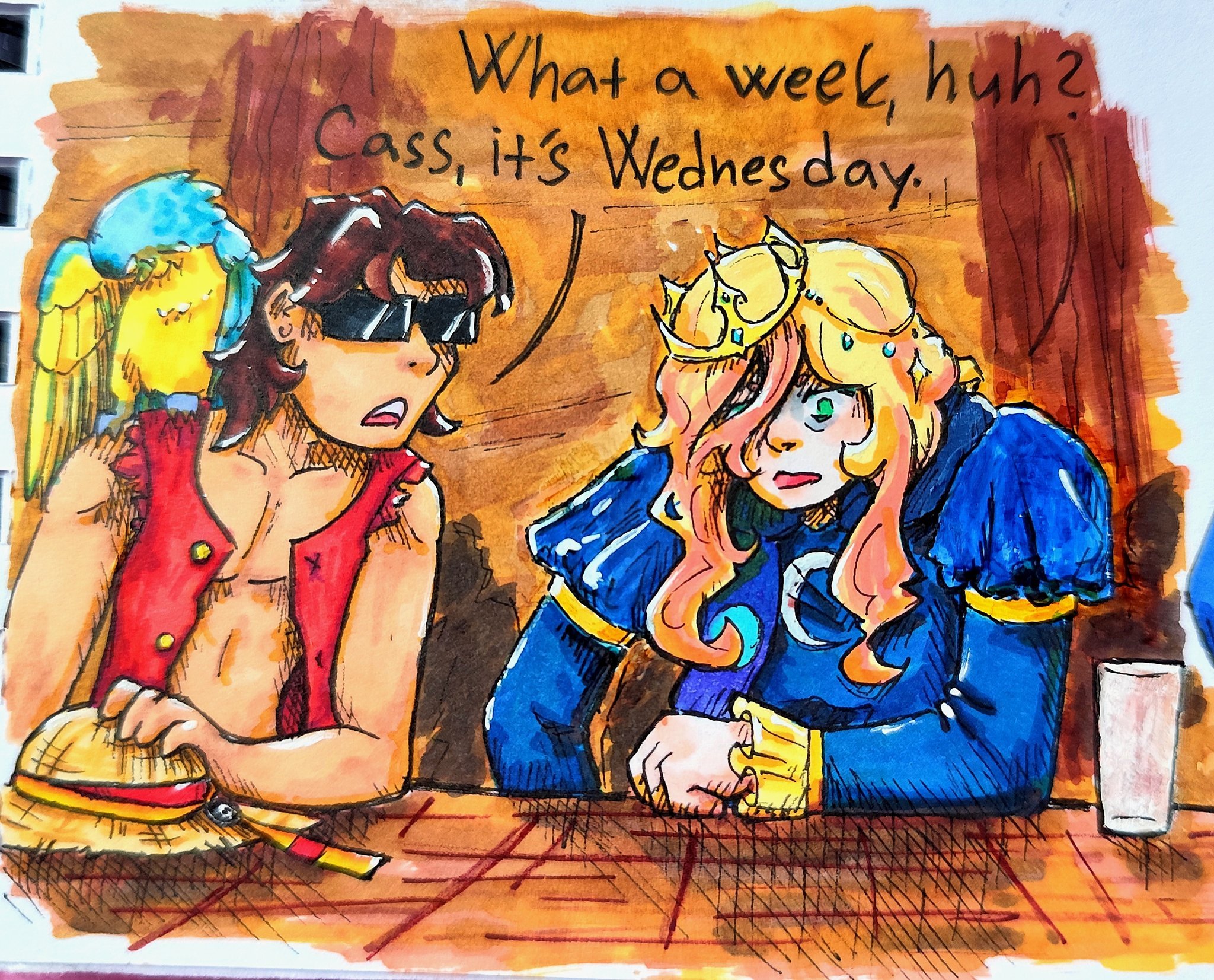 Cass stops by at the Crooked Crow Bar to meet with the King of the Pirates himself – drawn by @fere1260 on X (formerly known as Twitter) on 25th September 2025